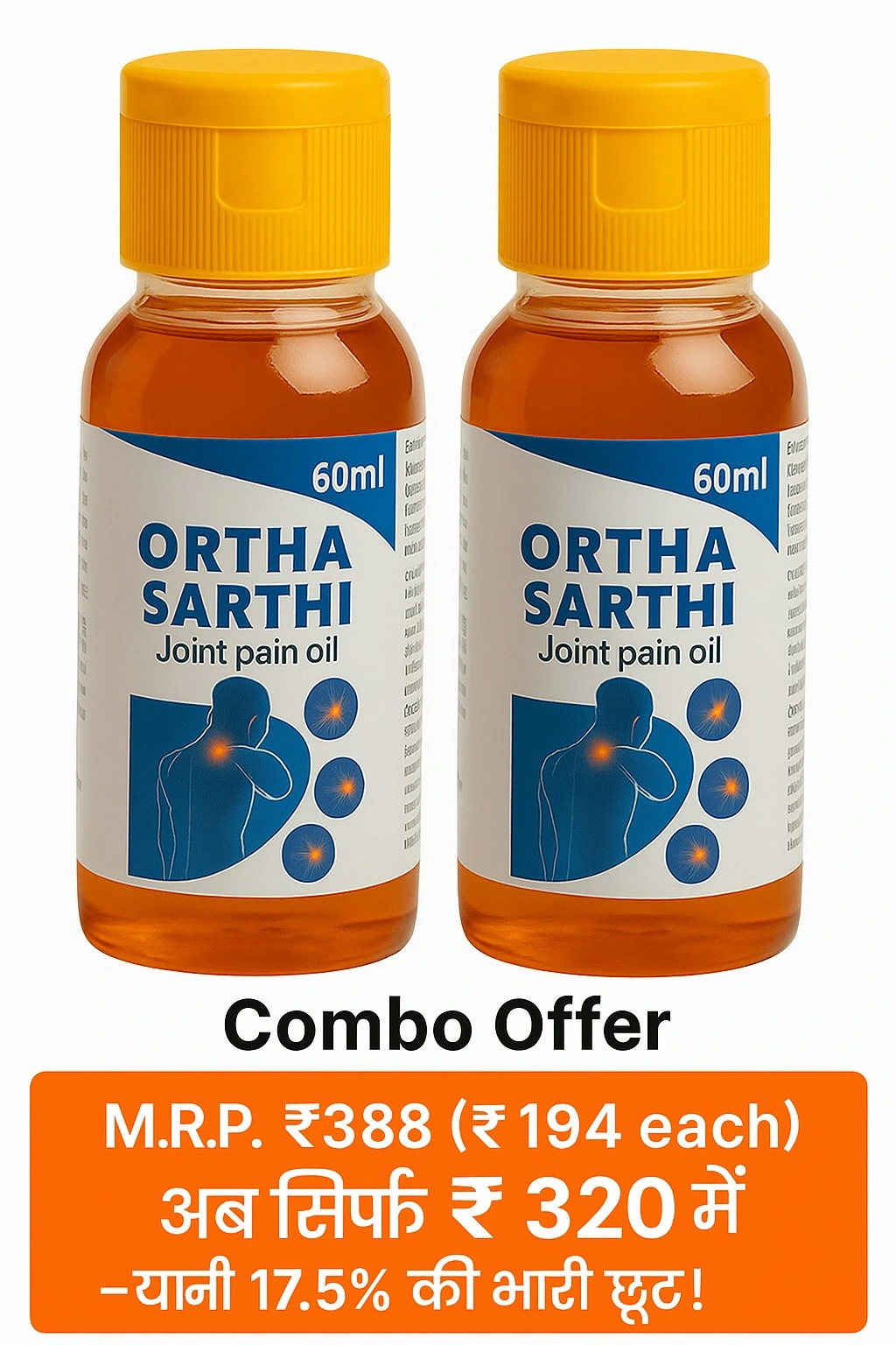 Ortha Sarthi is Shri Ayurveda Imperia’s flagship Ayurvedic oil, specially formulated to provide fast and long-lasting relief from joint and muscle pain. Powered by time-tested herbs and natural ingredients, Ortha Sarthi restores mobility, reduces stiffness, and supports joint health – the Ayurvedic way.